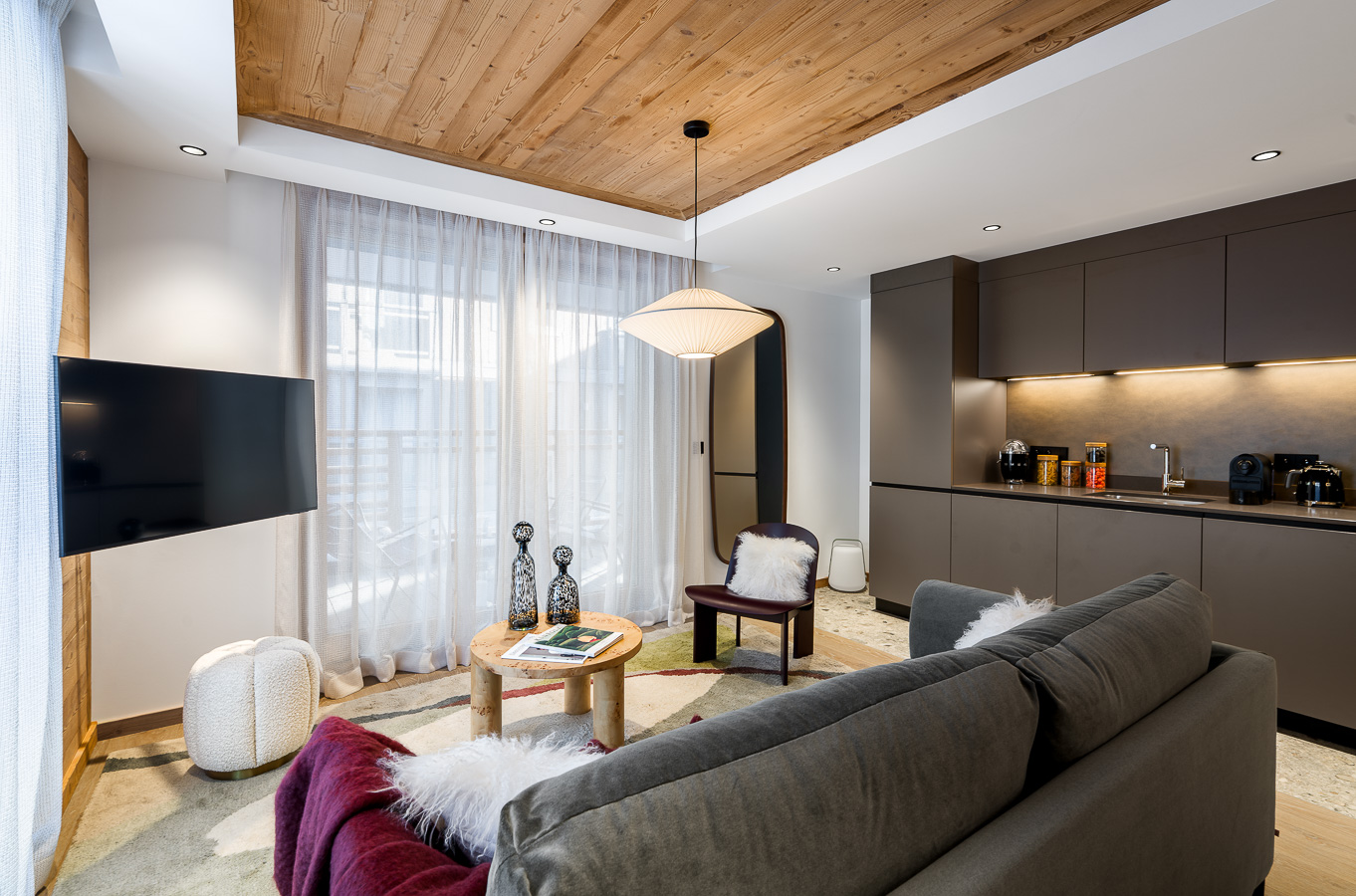 Lodges numéro 3, situé au 1er étage de la résidence intimiste Kangto, offre 80 m² dédiés au bien être de ses convives.