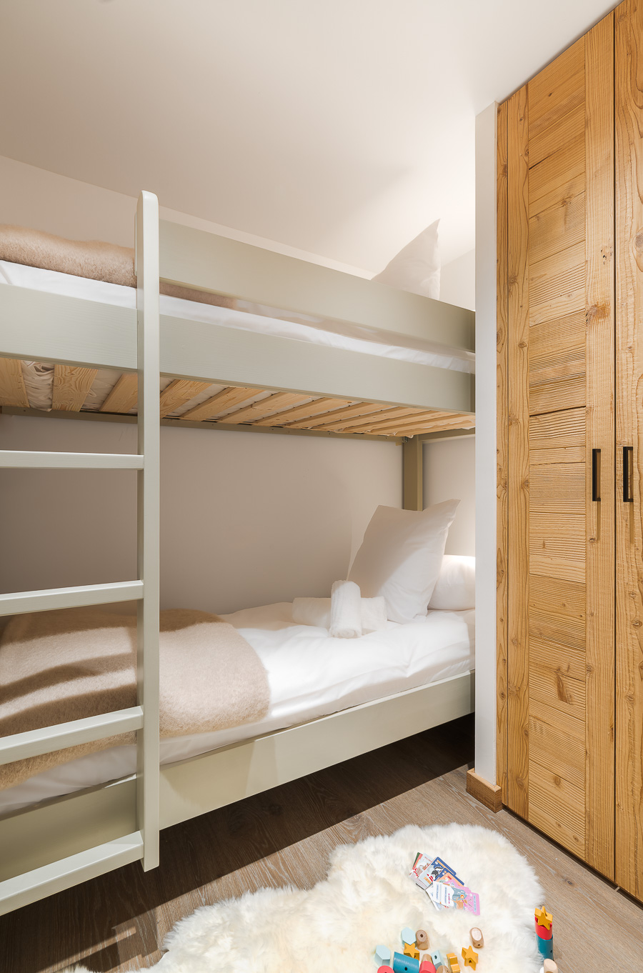 Cet appartement offre 3 suites avec lit double, un coin cabine avec lit superposé ainsi que 3 salles d'eau.