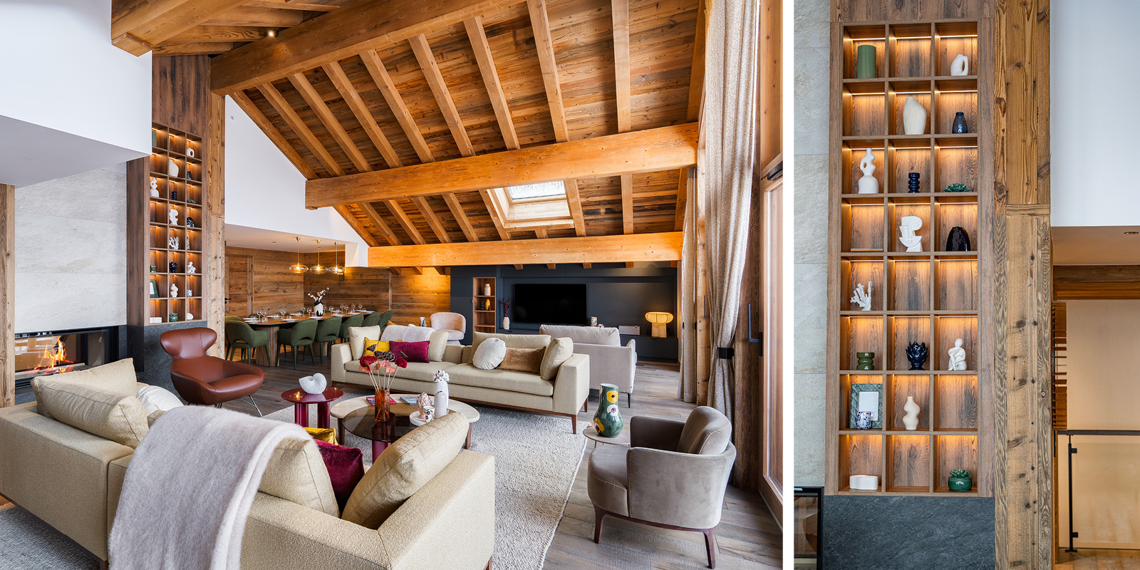 « Un chalet d’exception pour des vacances à la montagne, dans une ambiance qui réinvente les codes de la décoration montagnarde ; pour vous faire vivre une expérience haut de gamme. » Une vision expliquée par Claudine Perrot, Directrice du pôle Design chez Alpine Design (Groupe Alpine Collection).
