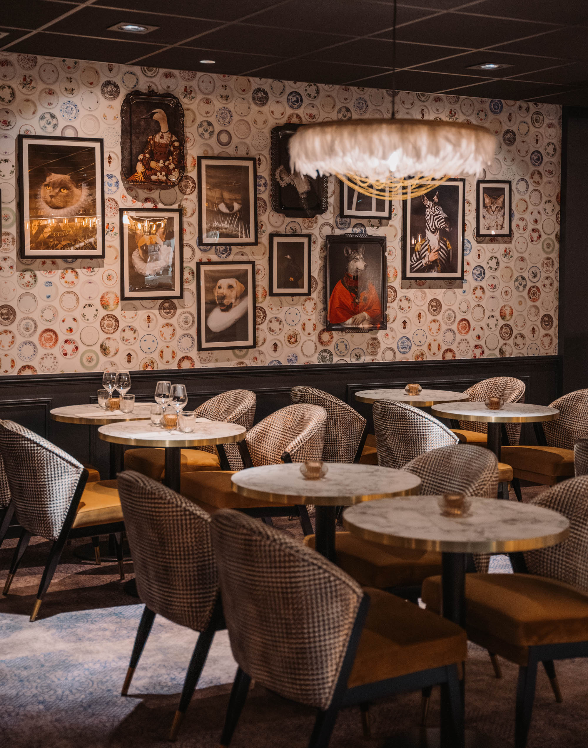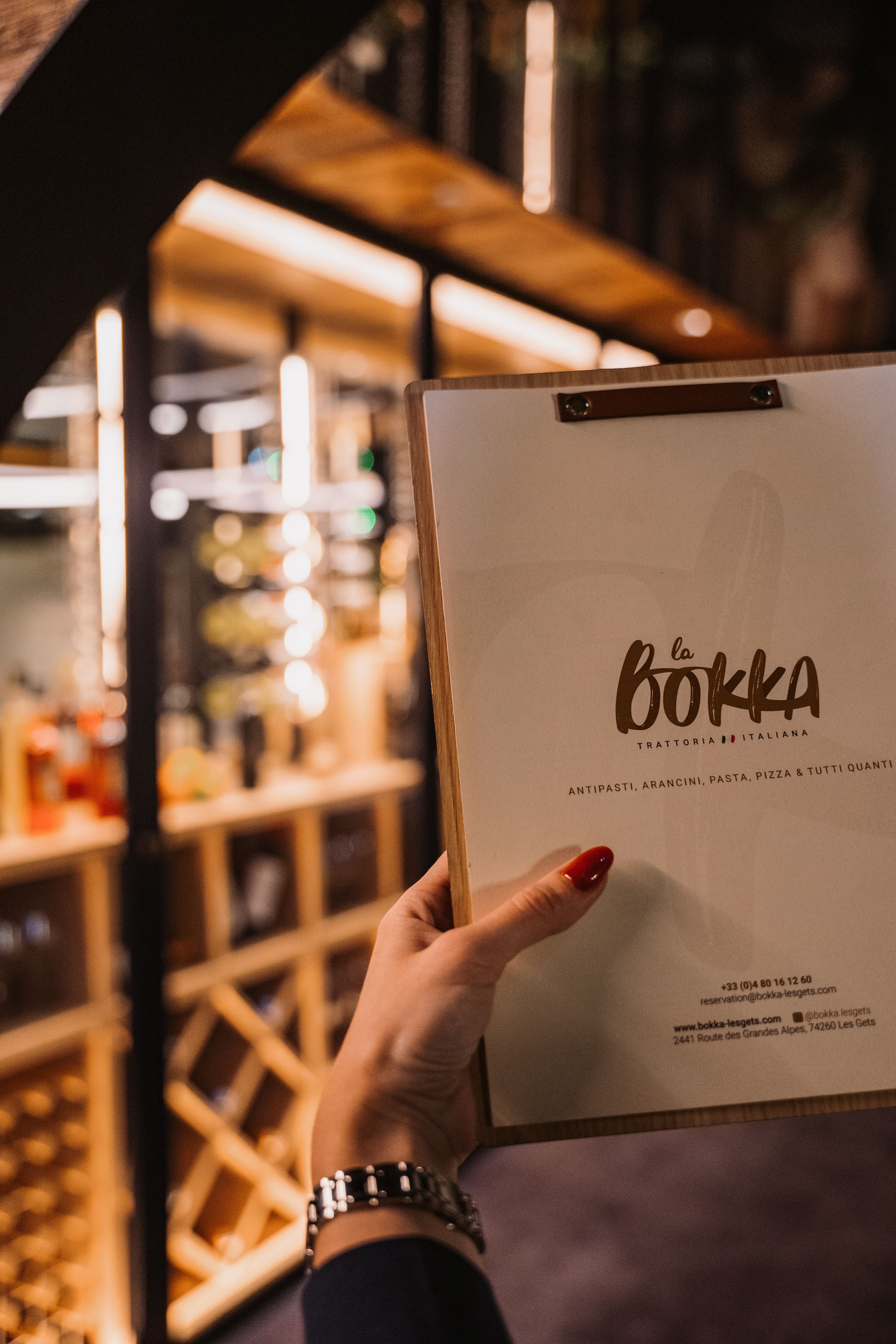 Notre vision de la Bokka était ambitieuse depuis le début. Nous avions imaginé un agencement inédit qui ne ressemble à aucun autre restaurant des Gets. Nous voulions mêler les influences italiennes traditionnelles à un design contemporain. Le but étant de créer une atmosphère festive mais aussi intimiste et romantique. Cette tâche a été confiée à notre architecte d’intérieur de l’équipe Alpine Interiors : Linda Rabouine qui, précédemment, a travaillé pour la maison Louis Vuitton. À cinq jours de l'événement, Linda et son équipe sont arrivées pour préparer le restaurant. Les décorations se devaient d’être généreuses et chaque espace d’être agencé à la perfection. Des cadres vintage ont été disposés et réarrangés, des éclairages baroques ont été placés, … Tout a été pensé comme un théâtre italien.